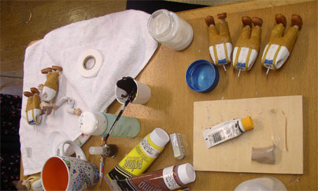アニメーション工房の人形制作風景。歩くシーンだけで、8体は角度を変えて必要だという。粘土のような物で創っているらしい。これ、木彫だったら、1週間かかる。それにしても、どんな風になるのか楽しみだな。