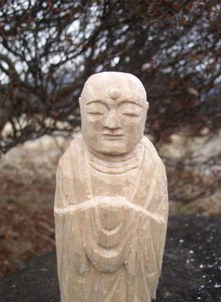 2013/12/12 井深達朗 「気づきの時」展の時に奇跡的に彼と出会い、ひたむきに絵を描く姿勢に心打たれた。 そして、彼を紹介してくれた大石さんが、長野に引っ越した。 長野にある村で、村お越しの出来そうな若者を募集した。その募集に見事受かり、この12月より職員として、定住し始めた。まだ単身赴任だが、4月まで一人で踏ん張ることを決意した。そして、それまで井深さんとの温かい関係が、必然的に遠くなることになった。井深さんにとっての大石さんは、彼が自分の世界を認めてくれて、自分の居場所を広げてくれた人だ。大石さんにとっても井深さんのことは、心残りであったと思うし、井深さんにとっても、頼りになるお兄さんが近くにいなくなることは、寂しいことだ。 僕にとっても、彼らの長野行きは、短い間の付き合いとはいえ、こんな心の広い若者がいて、年の差を超えて、素晴らしい友人の一人に加えていただけることを喜んでいた。そして、その村の村長の存在を知り、その村にも興味を持った。 その村に行ってみたいと思った。「一緒に行きませんか」と井深さんを初対面の日に誘った。「考えさせてください」と言われた。そりゃ〜そうだろ〜初めて会って、わけのわからない変なオヤジに言われてもな〜と思った。しかし、それから彼は時間の許す限り、「気づきの時」展の会場に来てくれて、その場に馴染んでいった。僕にも随分慣れて来たようだった。 1/4の奇跡の映画が終わって帰る頃、僕の顔をじっと見て「大石さんの所に一緒に行きます」と彼から言ってくれた。大石さんの奥さんのひろ子さんが、彼の向こう側に立ってその言葉を聞いて、目を赤くしているのがわかった。僕も、ひろ子さんの顔を見て、目頭が熱くなった。 そして、当日。 雪かもしれない。天気予報は、長野の飯田地方まで覆い尽くすように雪マークが付いていた。しかし、早朝の神奈川は晴天だ。彼の家の近くまで迎えに行った。お母さんも心配顔で僕たちが車で去るまで見送る。しかし、あえて、彼が一人で生きていけるように!新しい出会いと、自分の道を切り開いてほしいという願いを込めている気持がよくわかる。(帰りの車の中で、彼が言った。「お母さんは、僕が30歳までに家を出て、自分一人で生きていけるように頑張りなさい。と言います。僕はがんばります」と教えてくれた) 車に乗り込むと、早速スケッチを始める。黙々と始める。そのひたむきさが心を打つ。 そこから、少し西に行き、御殿場から河口湖を通って、中央道にでた。まだ晴天。そこから、だんだんと雲空.、重い雲。諏訪湖辺りから雪がぱらつく。「大丈夫かな?」しかし、向こうには十戒のごとく雲が割れ、光が差し込んでくる。道は険しいけど、きっとこの先には光が差し込む。彼の進む道を暗示しているような気がした。 中1で不登校になったという。彼の今までは、僕たちには想像出来ない程の出来事があっただろう。そして、ご両親は、どれだけ、悩み、考えてきたのだろう。それでも、彼の力を信じて、こうして彼を育て上げたご両親に脱帽する。 飯田線の線路を渡る時、「山下清は、線路を歩いて行ったんですよね」「山下清、好き?」「はい」「山下清みたいになりたいの?」「はい」井深達朗は、現代の山下清なのかもしれない。 ひたむきに描く。どこでも、描く。目の前に現れた風景を描き、そして、目の前に現れた人を描く。「描いてもいいですか?」言われた人は、「あっはい。はい。」今まで仕事が忙しかったり、何かにおわれている人でも、このひと時を井深さんと共有する。そして、その時間は、自分の生きている意味、自分の大切だったことを、思い出す。「あと、もう少しいいですか?」「いいですよ」そして誰もが、今を感じる。今このひと時を幸せに感じる。 「大石さんの家に僕の彫った仏像があります。見てください」彼は木彫もやるのか?そして、見た。 僕は、彼の絵を見た時と同様に衝撃を受けた。顔がいいのだ。やさしく、おおきく、慈愛に満ちた顔。この子のどこにこんな心がひそんでいるのだろう? 帰りに我が家に寄ってもらった。僕の作品を見たり、写真を見て、「僕にも手伝わせてください」と言われた。「手伝うことはないかも知れないけど、いつでも、来てください」と答えた。 彼との旅は一旦終わった。 昨日、息子が来た。「どうして、ココを小嶋伸が、やらなきゃならないの?充分今までの世界を貫けば、人に伝わるんじゃないの?」と言われた。成長したな〜と正直思った。親の体調や、経済的なことを心配してくれているのだ。40歳くらいまで、自分の親から心配され、この歳になったら子供から、心配される。 息子達に言う。「大きな意味で、僕が今やっていることや、感じていることは、自分にとって必要なことなのだ。いつまでもそこに留まってはいられないし、前に行かなければ、死んだも同然なのだ。僕のアンテナと今君が立てているアンテナとは、ちょっと周波数